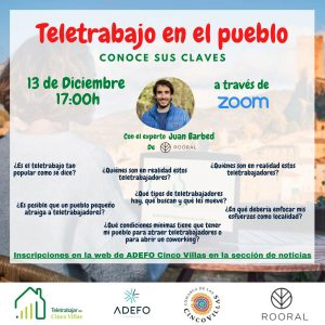 El lunes 13 de diciembre a las 17 h. Adefo organiza una videoconferencia con Rooral en la que se hablará de teletrabajo y las claves para atraer a este nuevo tipo de profesionales.