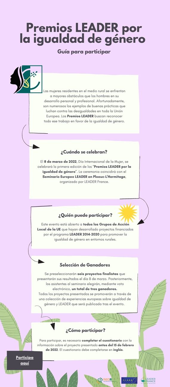 - Enlace de participación en los Premios LEADER por la igualdad de género (es necesario introducir una cuenta de Gmail)