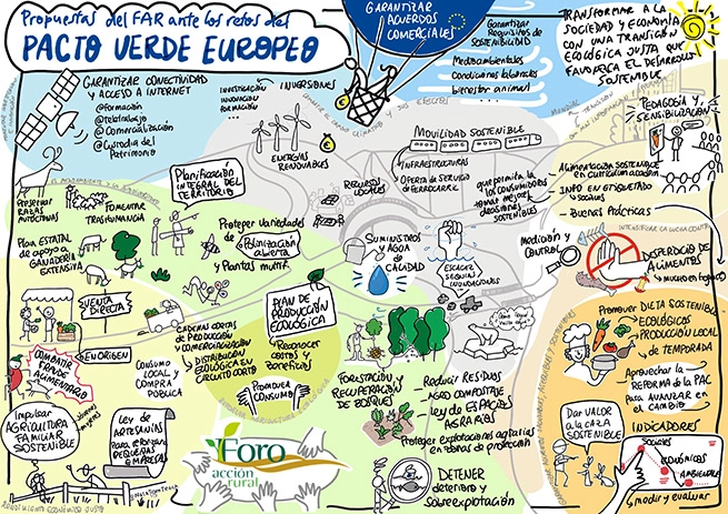 - El Foro de Acción Rural lanza un documento con 36 propuestas ante los retos del Pacto Verde Europeo. La clave: apostar por prácticas sostenibles que conformen un medio rural vivo y un sistema agroalimentario justo.