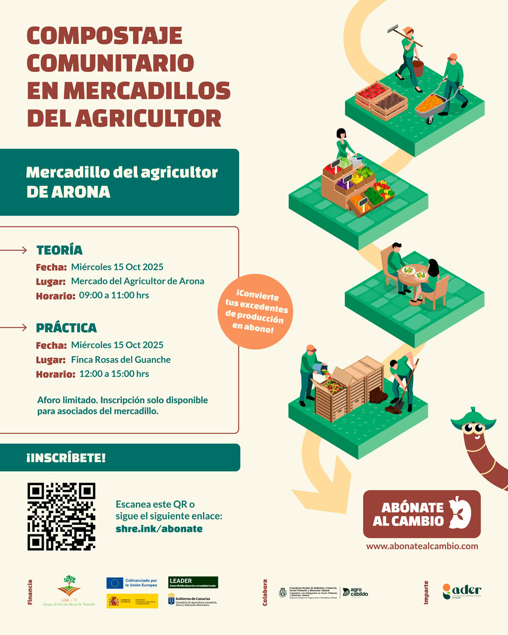 El proyecto 'Abónate al cambio' busca capacitar a los asociados y técnicos vinculados a los mercadillos del agricultor ubicados en zonas LEADER de Tenerife en técnicas de compostaje comunitario sostenible, promoviendo así la sostenibilidad y la economía circular en la agricultura local.