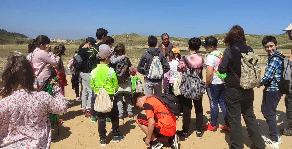 Las últimas tres salidas consistieron en visitar un entorno costero completamente distinto pero también muy importante para el ser humano: los sistemas dunares. Durante esta actividad el alumnado participante ha conocido las peculiaridades de este tipo de hábitats, su importancia ecológica, social e incluso económica. Para ello han visitado el vivero de plantas dunares que la Dirección General de Sostenibilidad de la Costa y del Mar del Ministerio para la Transición Ecológica tiene en Loredo, e incluso realizaron una actividad de voluntariado de restauración dunar con el que contaron con planta cedida gratuitamente por este centro.