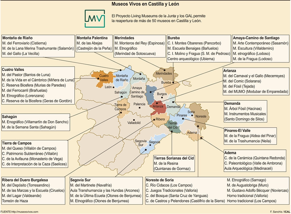 Fue ese el germen por el que García Rojo envió un correo electrónico a los 43 Grupos de Acción Local restantes de Castilla y León para plantear la idea y, tras recibir la respuesta positiva inicialmente de cinco, se puso en contacto primero con la Junta y luego con la Comisión Europea para recabar colaboración pública con la que implantar un sistema que ya alcanza a más de 50 museos de Castilla y León más otros tres gallegos y uno checo, tras la adhesión de otros 13 GAL a los seis iniciales, y que llegará a un total de 70 centros antes de que finalice el año 2021.