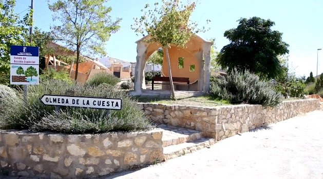 Olmeda es ahora un emplazamiento amurallado de monumentos con reminiscencias dalinianas que se prodigan a mansalva, acompañado todo ello de un sinfín de árboles, muchos aún de escasa altura. «Hace once años todo lo que ves parecía el paisaje después de un bombardeo. Había 60 o 70 casas ruinosas en manos de una quincena de propietarios. A cambio de las obras de desescombro, los dueños cedieron los solares al Ayuntamiento».