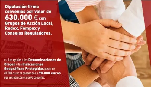 Por otro lado, el importe del convenio firmado con Redex es de 60.000 euros para la realización de acciones de cooperación con asociaciones de desarrollo local y rural de ámbito nacional, comunitario e internacional, así como acciones de promoción y valorización de productos endógenos y turismo rural de las zonas asociadas.