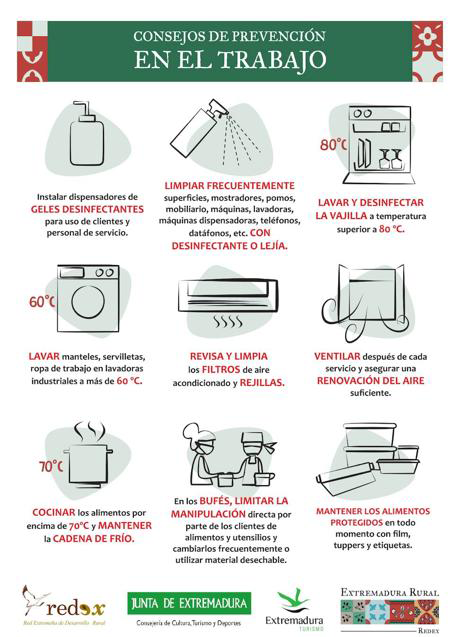- Desde que sobrevino la pandemia, las empresas turísticas están realizando un ingente esfuerzo por generar confianza y seguridad a trabajadores y clientes y a la vez sobrevivir a la hemorragia que la pérdida de negocio está suponiendo para la mayoría de ellas. La actual crisis sanitaria ha obligado a implantar nuevas medidas para garantizar la seguridad, como el distanciamiento social o la higiene de manos, que obligan a empresas y clientes a incorporar estas normasa las habituales del sector. Por nuestro papel como agente dinamizador e intermediario entre el territorio rural y las instituciones públicas y privadas, sabemos que una de las prioridades para reactivar el turismo era la adopción por las empresas de medidas de seguridad y salubridad. Por ello, hemos querido ofrecer herramientas para que esta recuperación de los establecimientos rurales frente a los impactos de la covid-19 sea más segura y sostenible, y hemos lanzado la web 'Turismo Rural Seguro', financiada por la Dirección General de Turismo de la Junta de Extremadura. Con este innovador proyecto, ofrecemos una herramienta para hacer más sistematizada y accesible la aplicación de los requisitos normativos y recomendaciones vigentes para prevenir el contagio en el sector turístico rural, desde una perspectiva de calidad y sostenibilidad. Queremos contribuir a asegurar la confianza, seguridad y respeto de las normas higiénico-sanitarias por parte de los clientes potenciales, mediante la adaptación de medidas de prevención y señalización en los establecimientos turísticos de Extremadura. El objetivo es facilitar al sector turístico rural extremeño la implementación de los protocolos y recomendaciones del Instituto de Calidad Turística Española (ICTE).