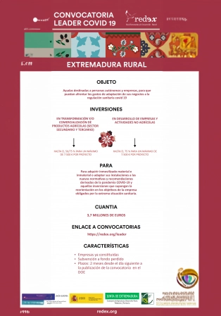 Se trata de una convocatoria excepcional, articulada conjuntamente entre todos los Grupos de Acción Local, REDEX (Red Extremeña de Desarrollo Rural) y la Secretaría General de Población y Desarrollo Rural de la Junta de Extremadura, que busca apoyar a los sectores empresariales del mundo rural en una primera instancia, para hacer frente al mantenimiento de sus actividades y de los empleos que generan.