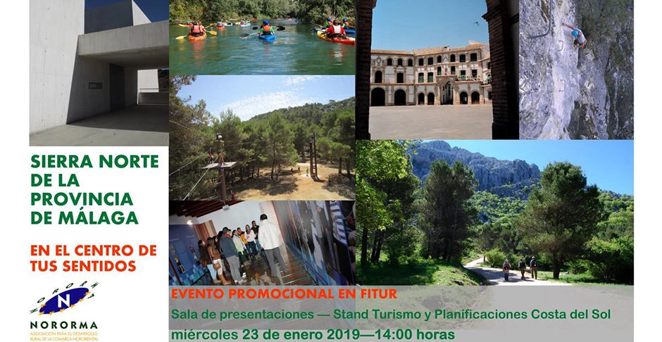 Los 7 municipios que integran NORORMA presentan en la Feria Internacional de Turismo de Madrid -FITUR- la marca "Sierra Norte de Málaga. En el centro de tus sentidos", una propuesta de destino turístico que busca la rica y variada oferta del territorio. El evento de presentación tendrá lugar en FITUR, el próximo miércoles 23 de enero, en la sala de presentaciones de Turismo y Planificación Costa del Sol.
