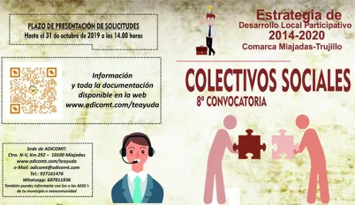 La Asociación para el Desarrollo Integral de la Comarca Miajadas-Trujillo (ADICOMT) acaba de abrir dos nuevas convocatorias de ayudas para proyectos no productivos. Se trata de la 7ª Convocatoria de Ayudas, dirigida exclusivamente a los ayuntamientos y la 8ª Convocatoria, destinada a todo tipo de asociaciones y colectivos sociales de la comarca.