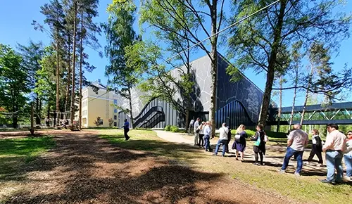 La ronda de intervenciones concluyó con la participación del gerente de READER, Juan Antonio Lázaro, para dar paso a una visita guiada al Museo Nacional de Estonia, con una historia muy peculiar. Aunque ya existía en una casa de campo en este mismo emplazamiento antes de la II Guerra Mundial, el terreno fue ocupado por una base militar rusa, con una pista de aterrizaje de aviones. Durante años no se pudo acceder a estas instalaciones que, tras la independencia de Estonia en 1991 fue recuperado de nuevo como Museo, aprovechando la antigua pista de aterrizaje como nuevo espacio museístico en toda una metáfora sobre la libertad y la identidad estonia. Aquí nos explicaron el significado de los colores de su bandera: el azul por el color del cielo, el negro por la tierra y el blanco como color de la esperanza y la libertad.